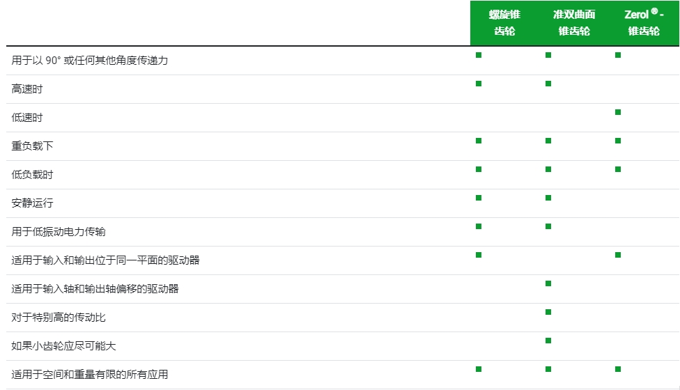 · 螺旋齒輪、準雙曲面齒輪和 Zerol ®錐齒輪的優點: