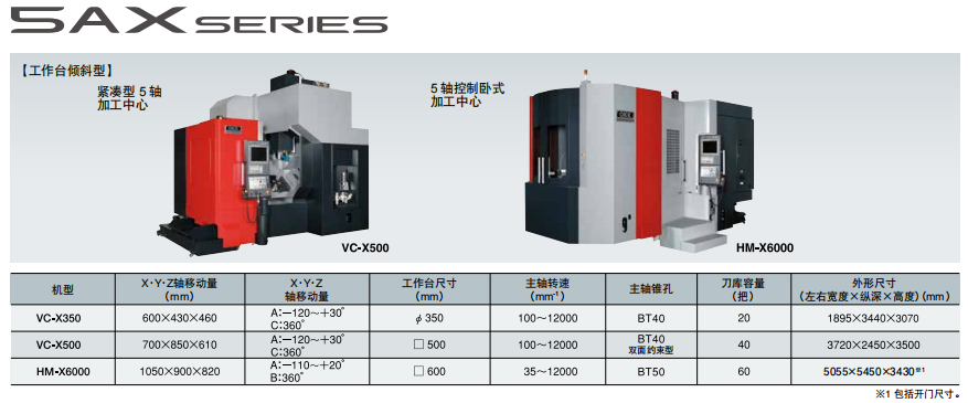 - · HM-X6000,該型號尤其適合復雜形狀的汽車和飛機部件的高效加工,該產品結合了HM系列高剛性臥式加工中心和立式加工中心生產過程中積累的五軸控制技術。